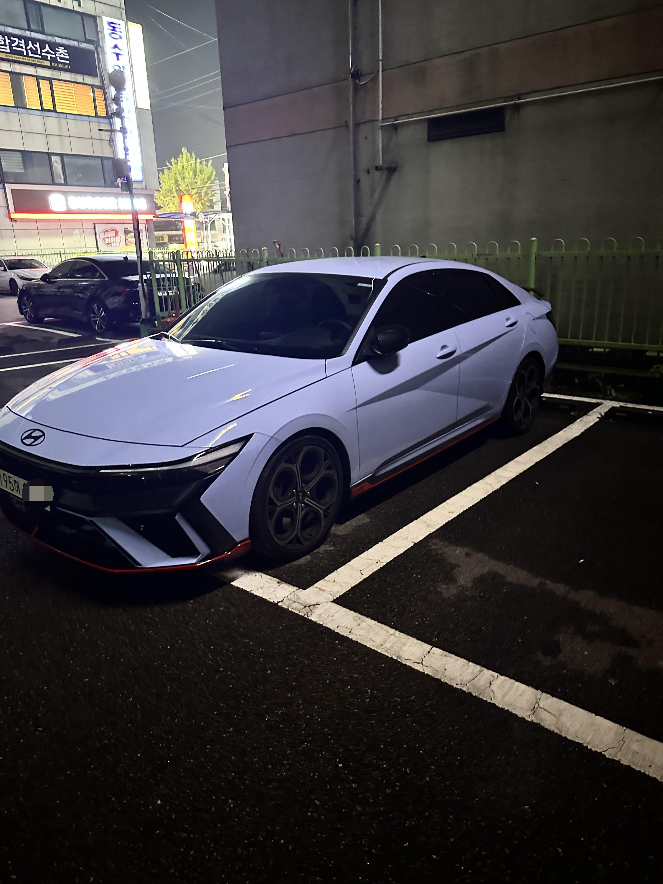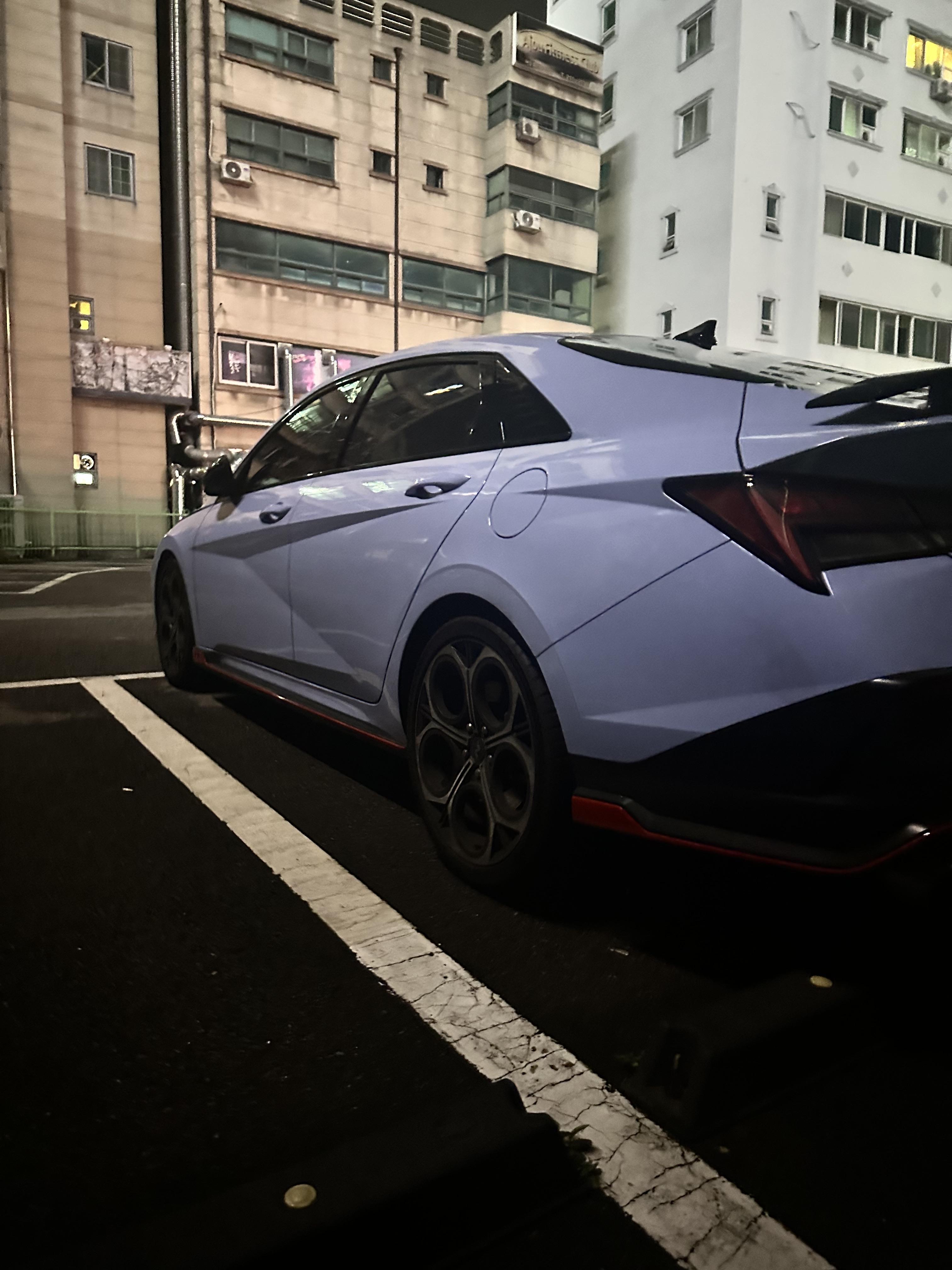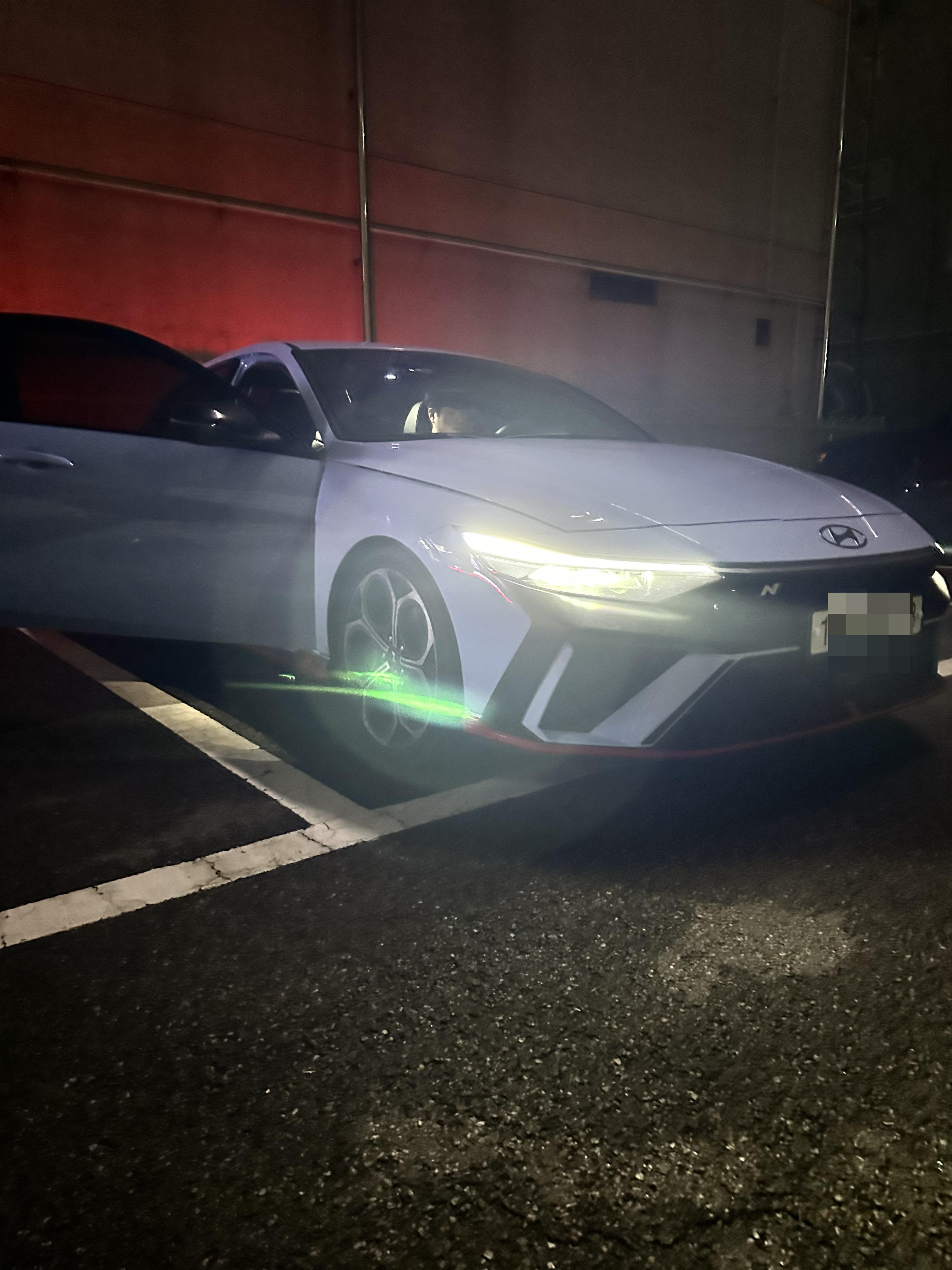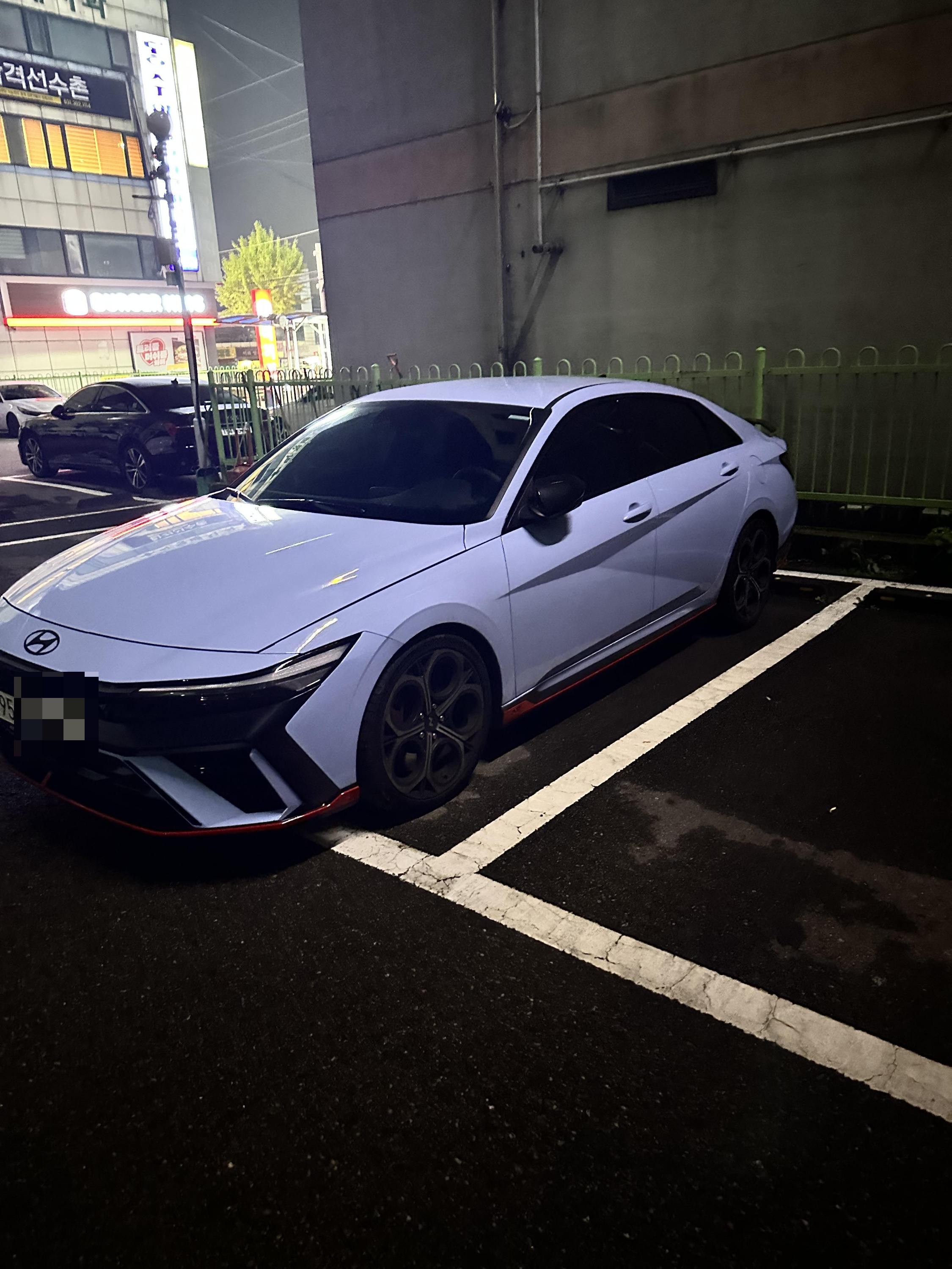 친구와 저는 대여 시간 30분전 빨리 도착하여 기다리고 있었습니다. 둘다 귀한시간을 낭비한게 아닌가 하는 생각도 들었지만 둘다 차를 좋아해서 아반떼N에 대한 호기심과 궁금증을 해소하고자 했습니다. 약20분전 전 렌트자가 반납을 하였고 그때 부터 심장이 두근거리기 시작했습니다. 전 렌트자 커플이 떠나고 저와 친구는 내려서 차를 구경하며 사진을 찍고 했습니다. 커뮤니티나 유튜브 등에서 전손, 타이어, 브레이크패드 등 여러 이슈에 궁금했는데 다행히 저희가 렌트한 차의 상태는 좋았고 키로수에 비해 타이어 상태가 좋진 않았지만 양호해보였습니다.