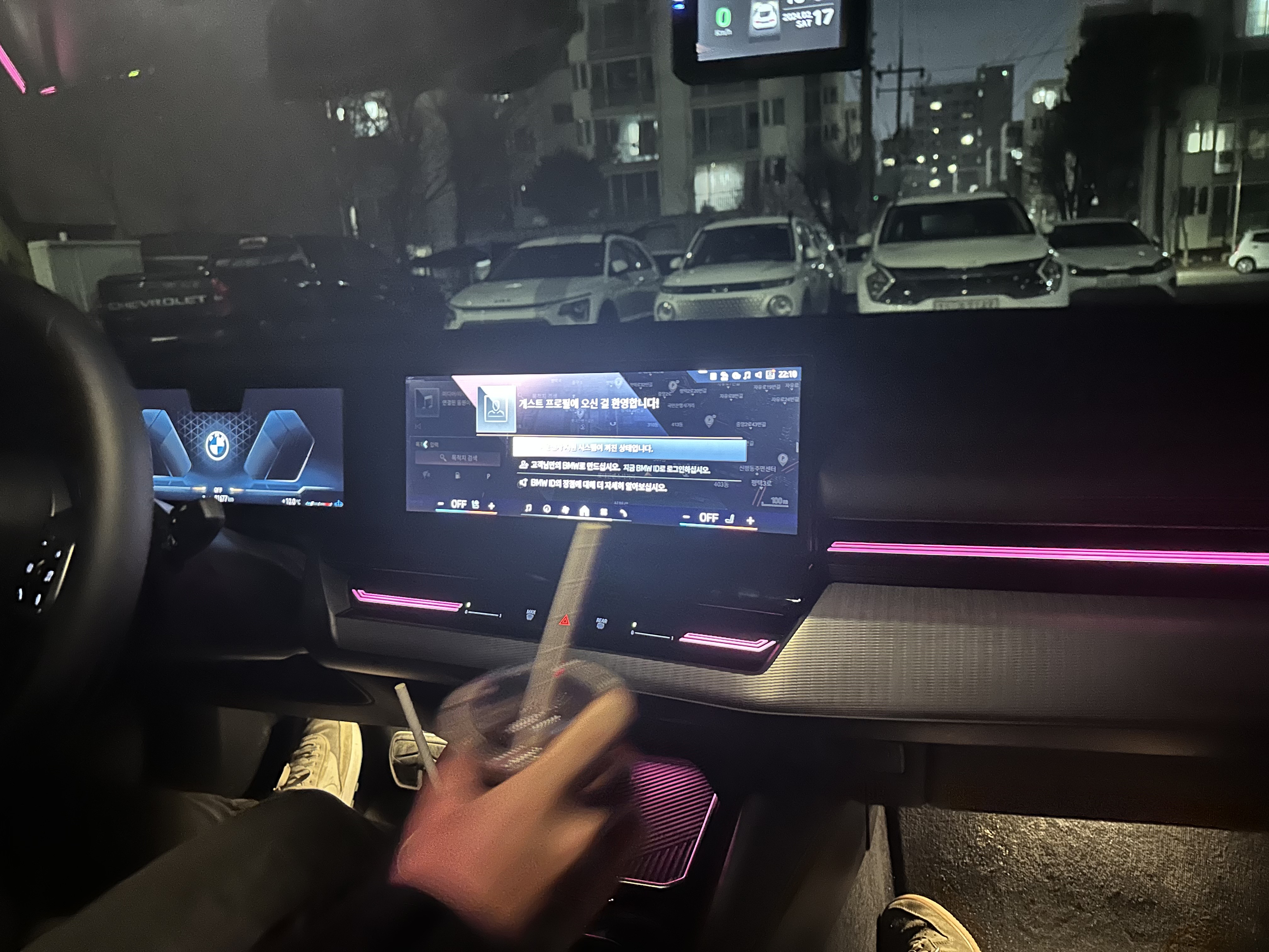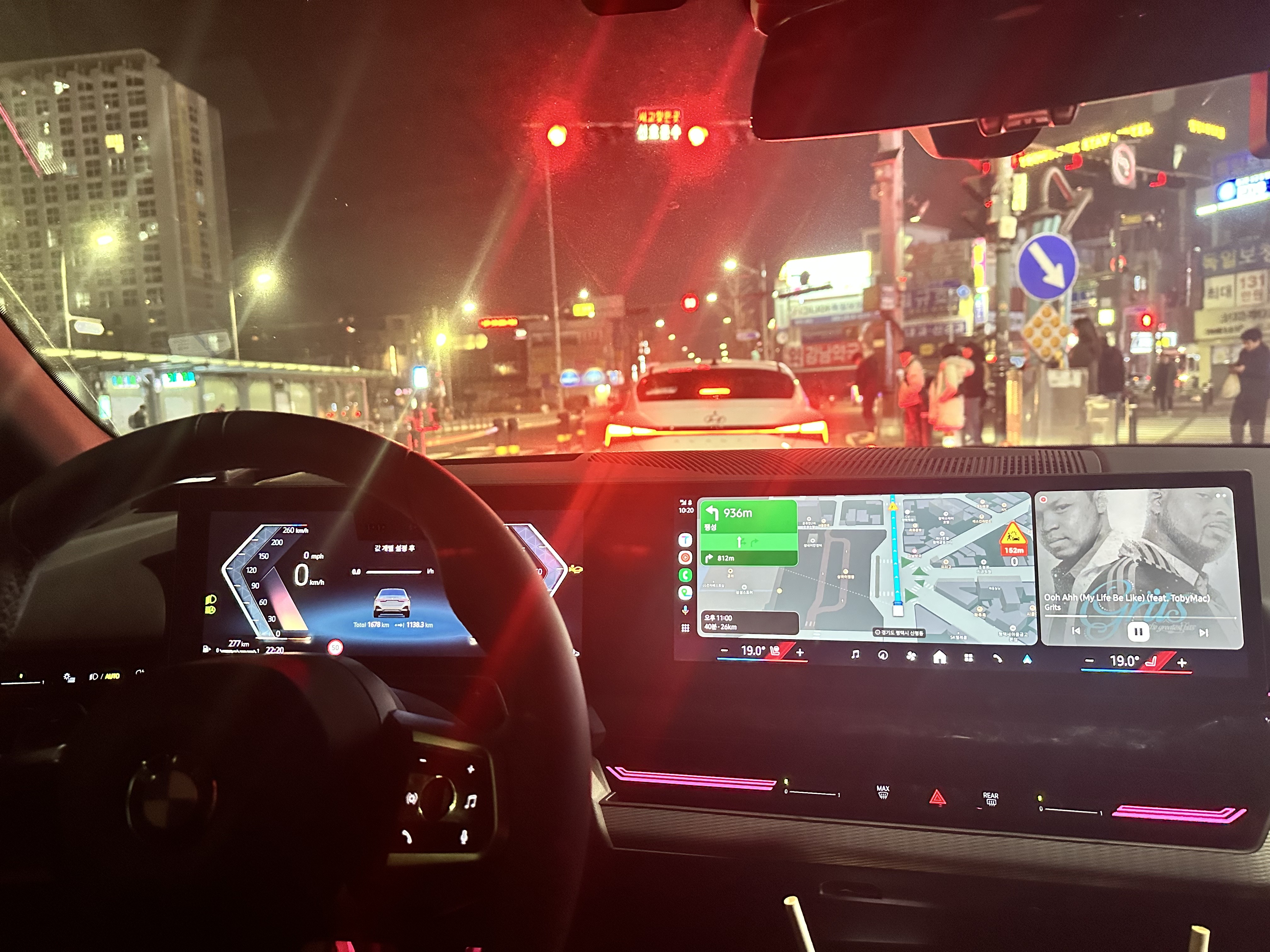 일단 차를 처음 빌리고 가장 놀랐던건 쏘카라고 믿을수 없는 차량의 색상과 화이트시트에 놀랐고 차량크기에 놀랐습니다. 5시리즈라고 하면 사실 국산차에 비해 작다는 인식이 강했는데, 옆에 세워져 있던 K8과 비교했을때 길이가 오히려 길었습니다. 트렁크 공간과 2열공간도 생각보다 굉장히 커서 놀랐고, BMW다우면서도 세련된 디자인에 감탄했습니다. 또 msport에는 하만카돈 스피커가 들어가 기대가 컸는데 정말 만족스러운 스피커세팅 이였던 것 같습니다. 사실 음향기기와 스피커에 대해 지식이 많이 없지만 노래를 틀었을 때 공간감?이 느껴졌고 소리를 키워도 막 귀가 아프거나 소음으로 느껴지는 것이 아니라 되게 차분하고 좋은 소리였습니다.