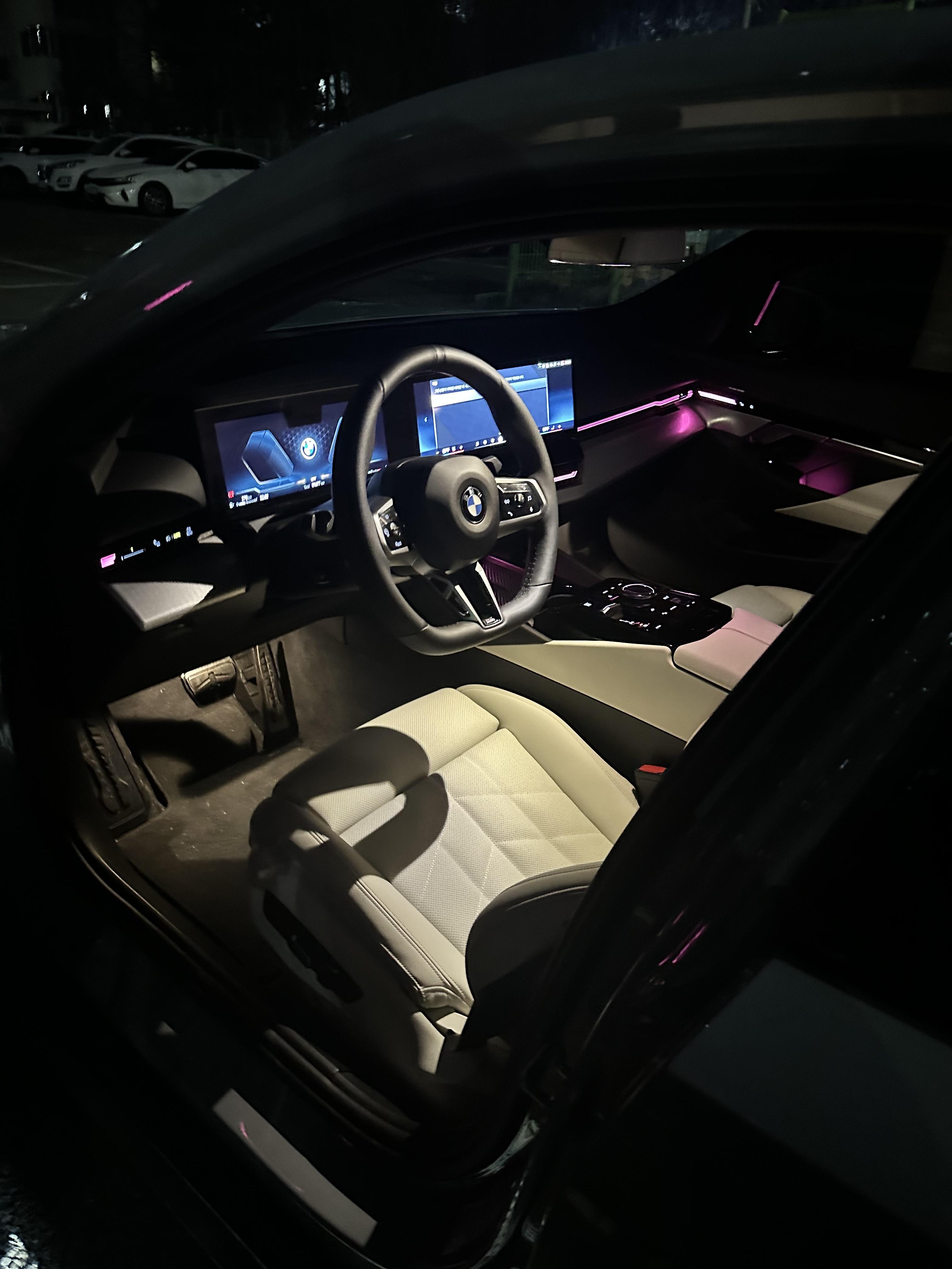 BMW 520i의 웰컴 세레모니는 차량을 시동 걸 때나 문을 열 때 특별한 경험을 제공하는 기능입니다. 이 세레모니는 BMW의 고급스러운 감성과 기술적인 혁신을 반영합니다. 차량을 받고 문을열때 화이트시트와 디스플레이의 생각외의 고급감에 너무 놀랐고 시동을 걸었을때 켜지는 라이트의 웰컴 세레모니는 정말 감동이였습니다. 특히 자동상향등, 오토컨트롤 기능에 감탄했고 BMW답지 않게 심심하니 편한 운전감에 조금 의아해 하기도 했으나 스포츠 모드로 바꾸자 시트, 핸들이 바로 조정되는 등 모드변경만으로도 재밌게 탈수 있게 세팅한 기술력에 놀랐습니다. 정차시, 주행시 핸들쏠림이나 잔진동이 전혀 없었고 역시 BMW가 차를 정말 잘 만드는구나 하고 감탄했던 것 같습니다. 에어서스가 들어가있는 것도 아닌데 방지턱넘을시 무난하게 잘넘어가 주었고 고르지 못한 노면에서도 매끈하게 털리지않고 주행할 수 있었습니다.