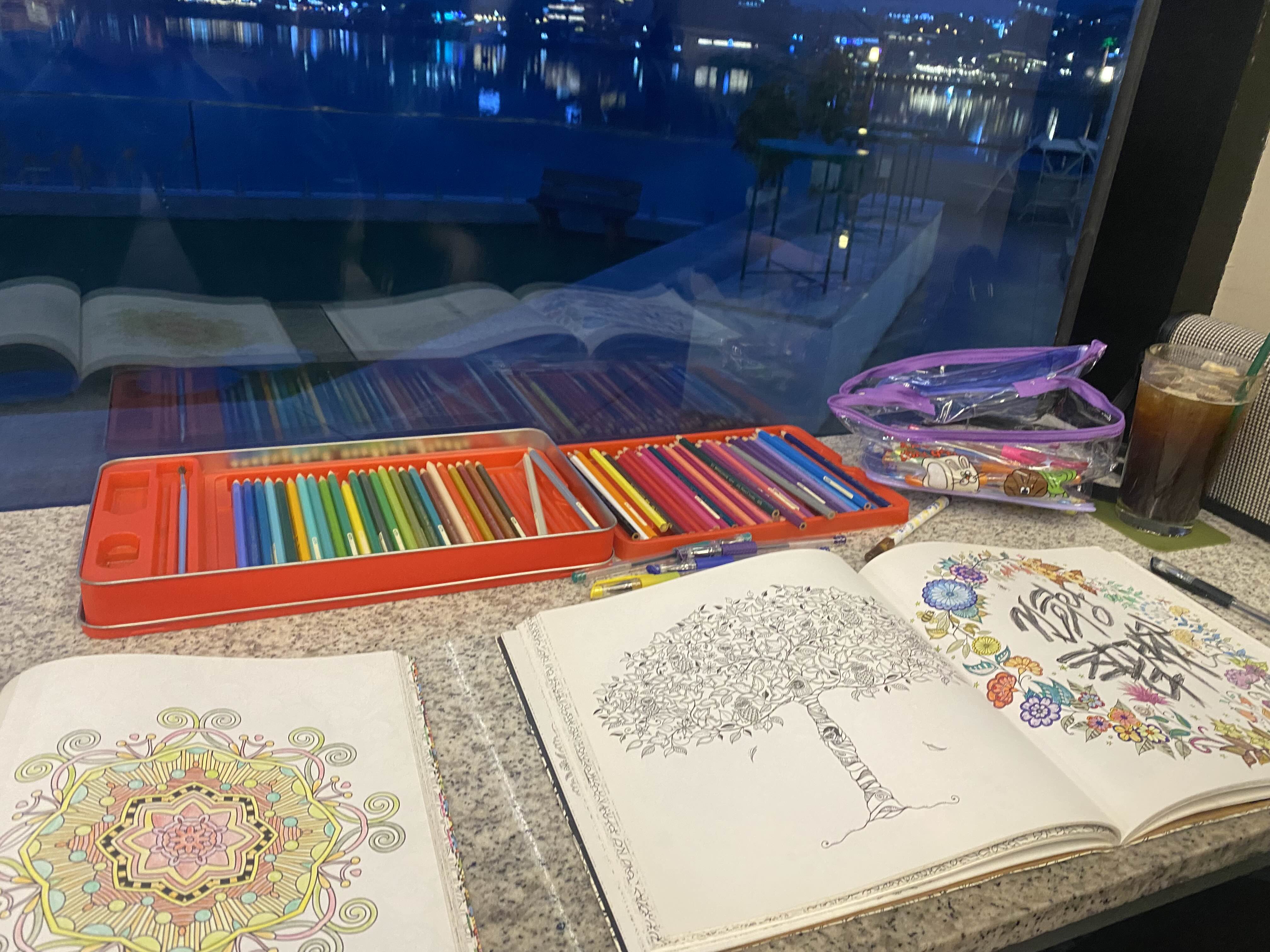 카페 한쪽에서 컬러링북을 하면서 시간을 보냈어요.