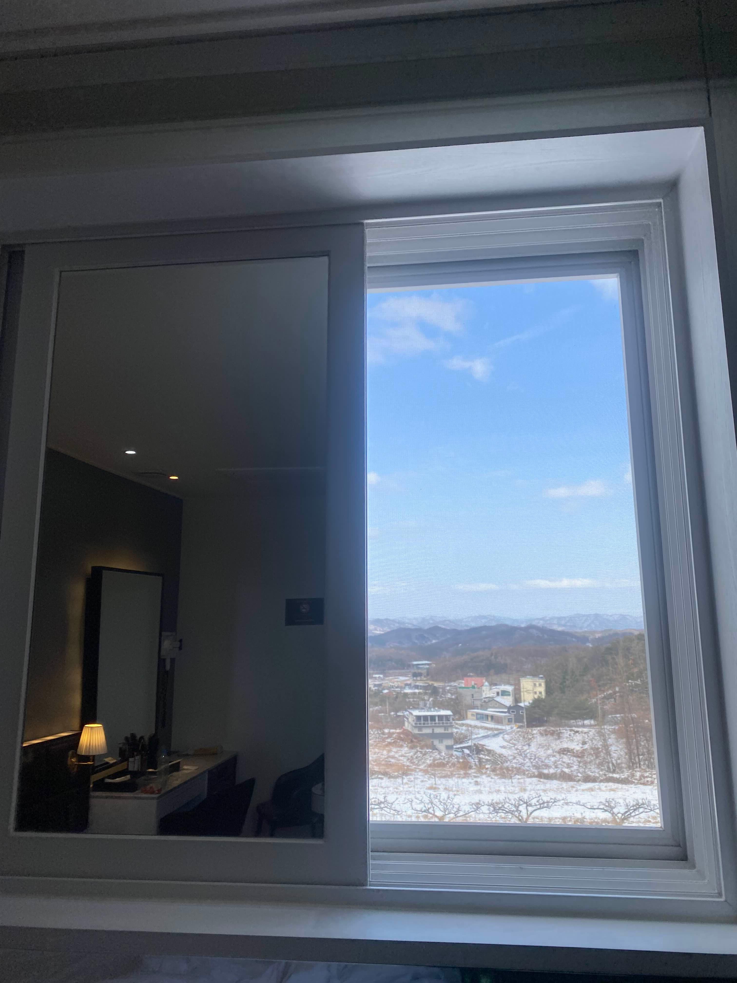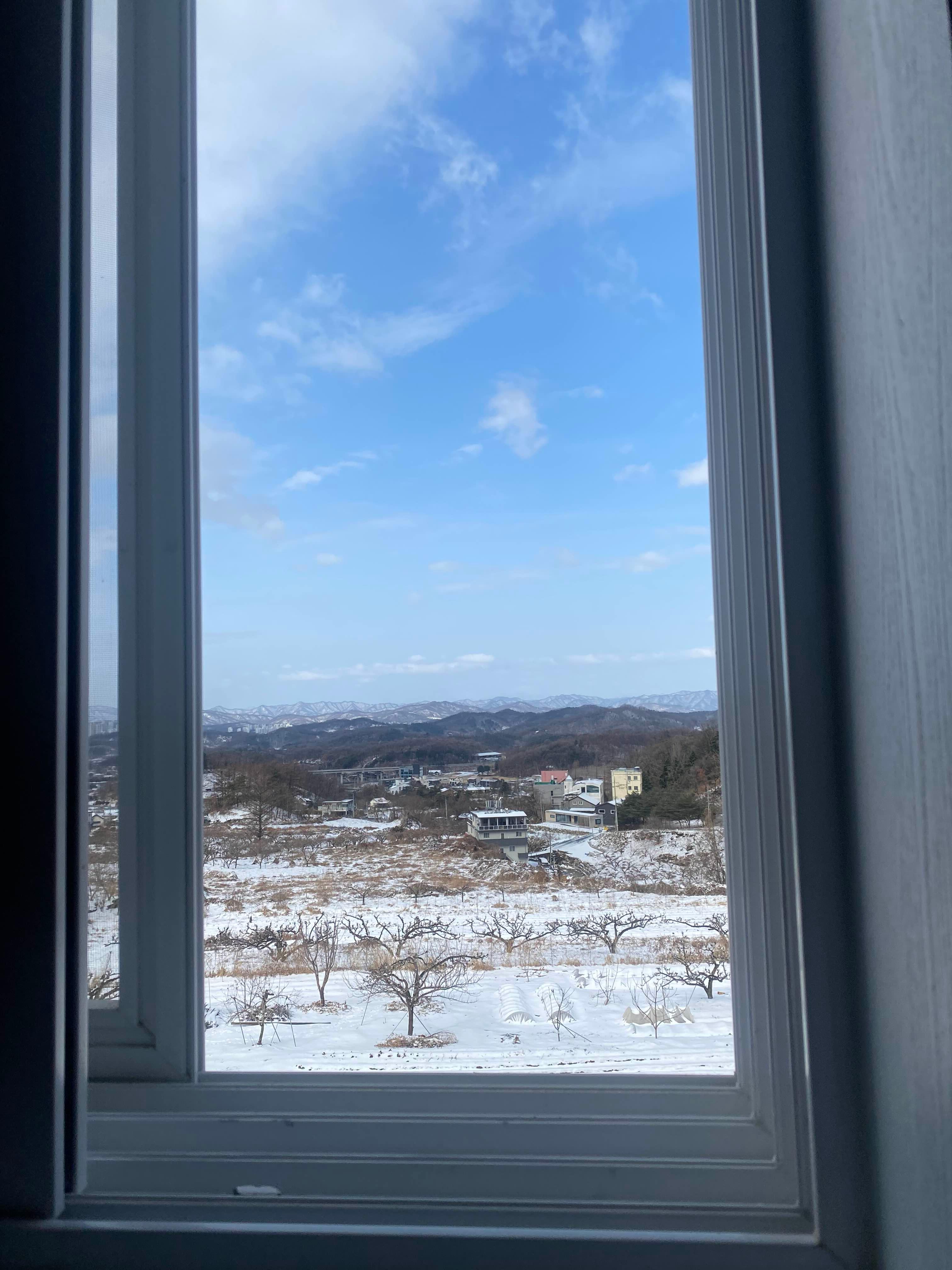 창밖으로 펼쳐지는 치악산 뷰는 이 숙소의 백미! 특히 아침에 안개가 살짝 낀 치악산의 모습은 정말 예술입니다. 자연 속에서의 여유로운 시간을 만끽할 수 있는 곳이에요.