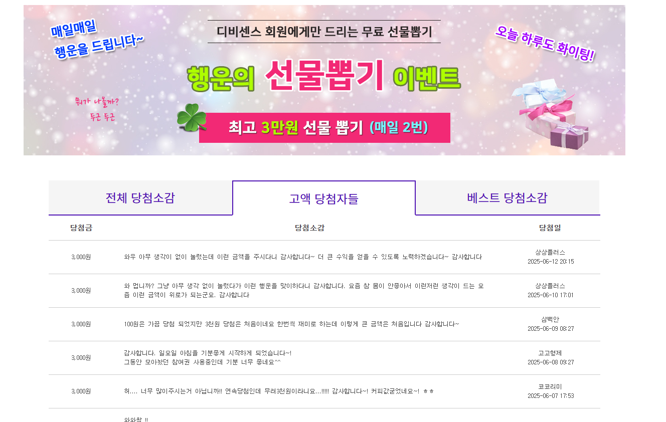 초보자도 쉽게 접근할 수 있는 시스템과 매일 제공되는 선물뽑기 이벤트로 다른 플랫폼과 차별화된 매력을 가지고 있답니다.