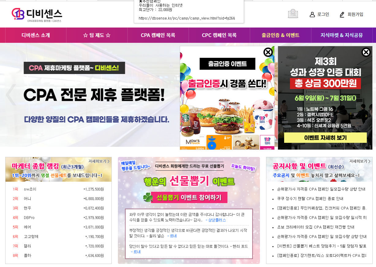 디비센스 공지사항이나 단톡방을 통해 신청할 수 있어요. 실적에 따라 순위 및 상금이 지급됩니다.
