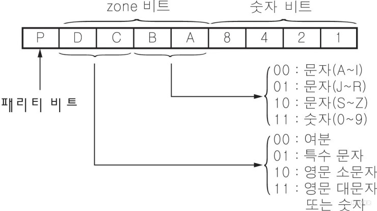 IBM 사가 개발한 코드. 8비트의 조합으로 1문자(character)를 표현하는 부호 체계이며, 이 8비트를 1바이트라 하고, 1바이트로는 영문자(a~z), 숫자(0~9), 특수 기호 등 256종의 문자를 표현할 수 있다. 8비트(또는 7비트)의 부호 체계의 세계 표준은 ISO 코드(ASCII 코드와 같다)이지만 EBCDIC은 이것과는 다르다. 그러나 범용 컴퓨터에서는 일종의 업계 표준으로서 널리 사용된다. 특히 숫자는 4비트를 사용하여 16진법으로 표현하고 있다. 2진화 10진 코드란 말은 10 진수의 0~9의 숫자를 2진수로 나타낸 것으로서 이 4비트에서 다시 4비트를 추가(즉, 확장)한 데서 생겨났다.