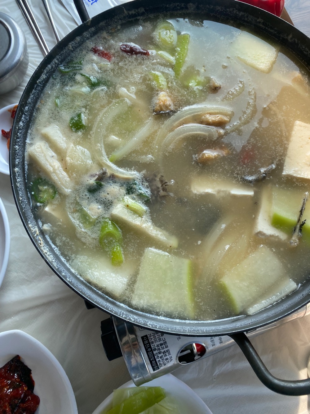 말린 우럭포와 두부, 청양고추, 새우젓으로 맛을 낸 국물 요리인데, 걱정했던 것과 달리 정말 시원하고 깔끔한 맛이 일품이었어요.