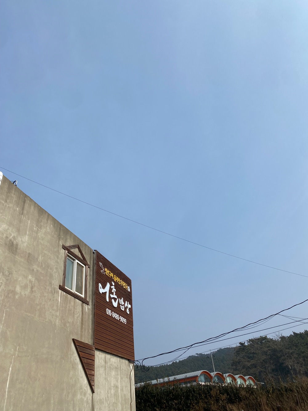 가게 앞에서 보이는 바다뷰와 예쁜 펜션들이 인상 깊었어요.