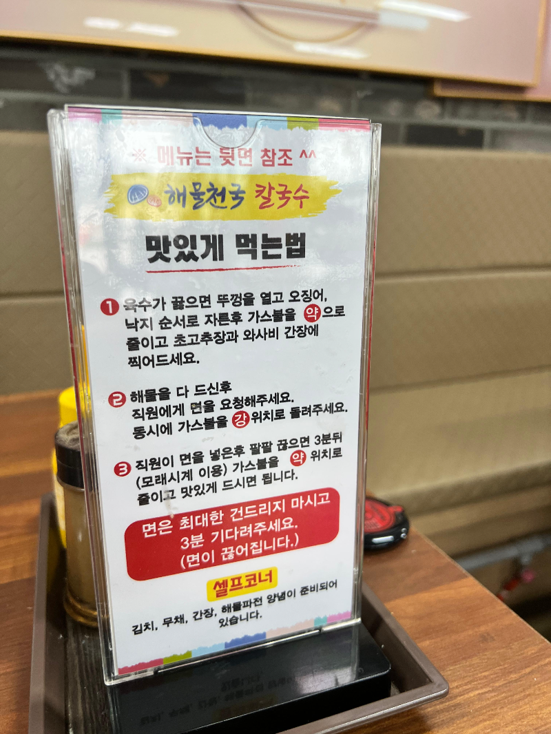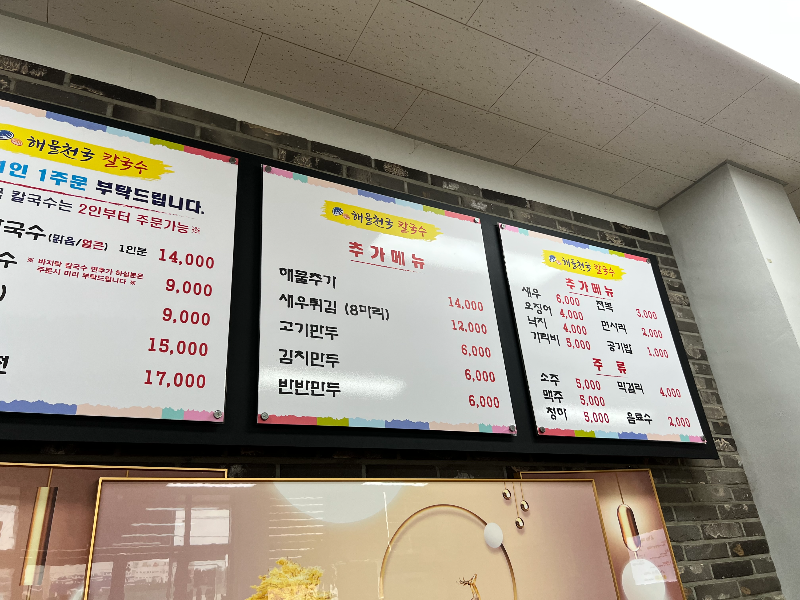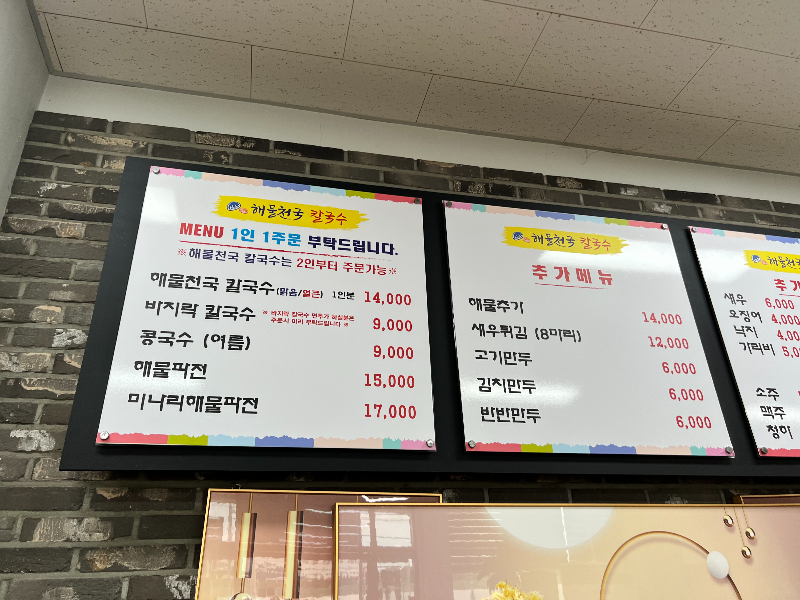 해물천국칼국수는 이름 그대로 해물 가득한 메뉴들이 정말 인상적이었습니다.