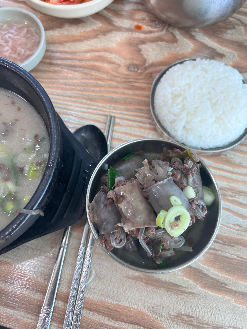뚝배기에 보글보글 끓여져 나온 국물은 진하고 고소하면서도 텁텁하지 않았고, 순대와 내장도 푸짐하게 들어 있어 먹는 즐거움이 가득했습니다.